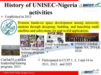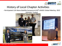 Support UNISEC-Local Activities Local Activity Presentation template Template on Proposal for Hosting the 12th UNISEC-Global Meeting and the 15th Nano-Satellite Symposium(pptx) Template on Member University List(xlsx) 2025 Activities Local Chapter UNISEC-Bangladesh UNISEC-Colombia UNISEC-Egypt UNISEC-Japan UNISEC-Kazakhstan UNISEC-Korea UNISEC-Malaysia UNISEC-Nepal UNISEC-Nigeria UNISEC-Philipines UNISEC-SAR UNISEC-Taiwan UNISEC-Thailand UNISEC-Turkiye 2024 Activities Show Past report Local Chapter UNISEC-Bulgaria UNISEC-Egypt UNISEC-India UNISEC-Italy ( Video) UNISEC-Japan UNISEC-Korea UNISEC-Malaysia UNISEC-Mexico UNISEC-Nepal UNISEC-Nigeria UNISEC-Philippines UNISEC-Samara UNISEC-SAR UNISEC-Thailand (Video) UNISEC-Taiwan UNISEC-Tanzania UNISEC-Tunisia UNISEC-Turkiye POC of Belgium POC of Netherlands POC of Portugal ( Video) 2023 Activities Show Past report Local Chapter UNISEC-Colombia UNISEC-Egypt UNISEC-Ethiopia UNISEC-Italy UNISEC-Japan UNISEC-Kazakhstan UNISEC-Mexico UNISEC-Mongolia UNISEC-Nepal UNISEC-Netherland UNISEC-New_Zealand UNISEC-Nigeria UNISEC-Romania UNISEC-SAR UNISEC-Taiwan UNISEC-Thailand UNISEC-Tunisia UNISEC-Turkiye Future Local Chapter UNISEC-Indonesia 2022 Activities Show Past report Local Chapter UNISEC-Bangladesh UNISEC-Colombia UNISEC-Egypt UNISEC-Ethiopia UNISEC-Japan UNISEC-Kazakhstan UNISEC-Mongolia UNISEC-Nepal UNISEC-Philippines UNISEC-SAR UNISEC-Thailand UNISEC-Turkiye Future Local Chapter UNISEC-Netherlands UNISEC-NewZealand 2020 Activities Show Past report Local Chapter UNISEC-Philippines 1st Virtual UNISEC-Philippines Meeting 2019 Activities Show Past report Local Chapter UNISEC-Bulgaria Regional Report UNISEC-Egypt Regional Report UNISEC-India Regional Report Video Report UNISEC-Italy Regional Report UNISEC-Japan Regional Report UNISEC-Germany Regional Report UNISEC-SAR (Southern Africa Region) Regional Report UNISEC-Turkey Regional Report UNISEC-Malaysia Regional Report UNISEC-Philippines Regional Report UNISEC-Taiwan Regional Report UNISEC-Samara Regional Report UNISEC-Tunisia Regional Report UNISEC-Mexico Regional Report Preparatory Committee Colombia Regional Report Costa Rica Regional Report New Zealand Regional Report Spain Regional Report Sudan Regional Report Switzerland Regional Report Thailand Regional Report 2017 - 2018 Activities Show Past report Local Chapter UNISEC-Egypt Local Activities UNISEC-India Local Activities 2nd International Programme on 75 Students' Satellite Mission 2022 UNISEC-Italy Local Activities UNISEC-Japan General Meeting Noshiro Space Event CLTP ARLISS UNISEC-Mexico The Third National Competition of Educational CanSat Pico-Satellites The 1st Contest state of Educational Satellites CanSat The 1st BAJA Contest of Educational Satellites CanSat The First CANSAT Bootcamp Costa Rica UNISEC-Samara Local Activities UNISEC-SAR Angola Namibia UNISEC-Turkey Local Activities Preparatory Committee Costa Rica 2016 Activities Show Past report 2016 UNISEC-Global Local Chapter Activity Reports